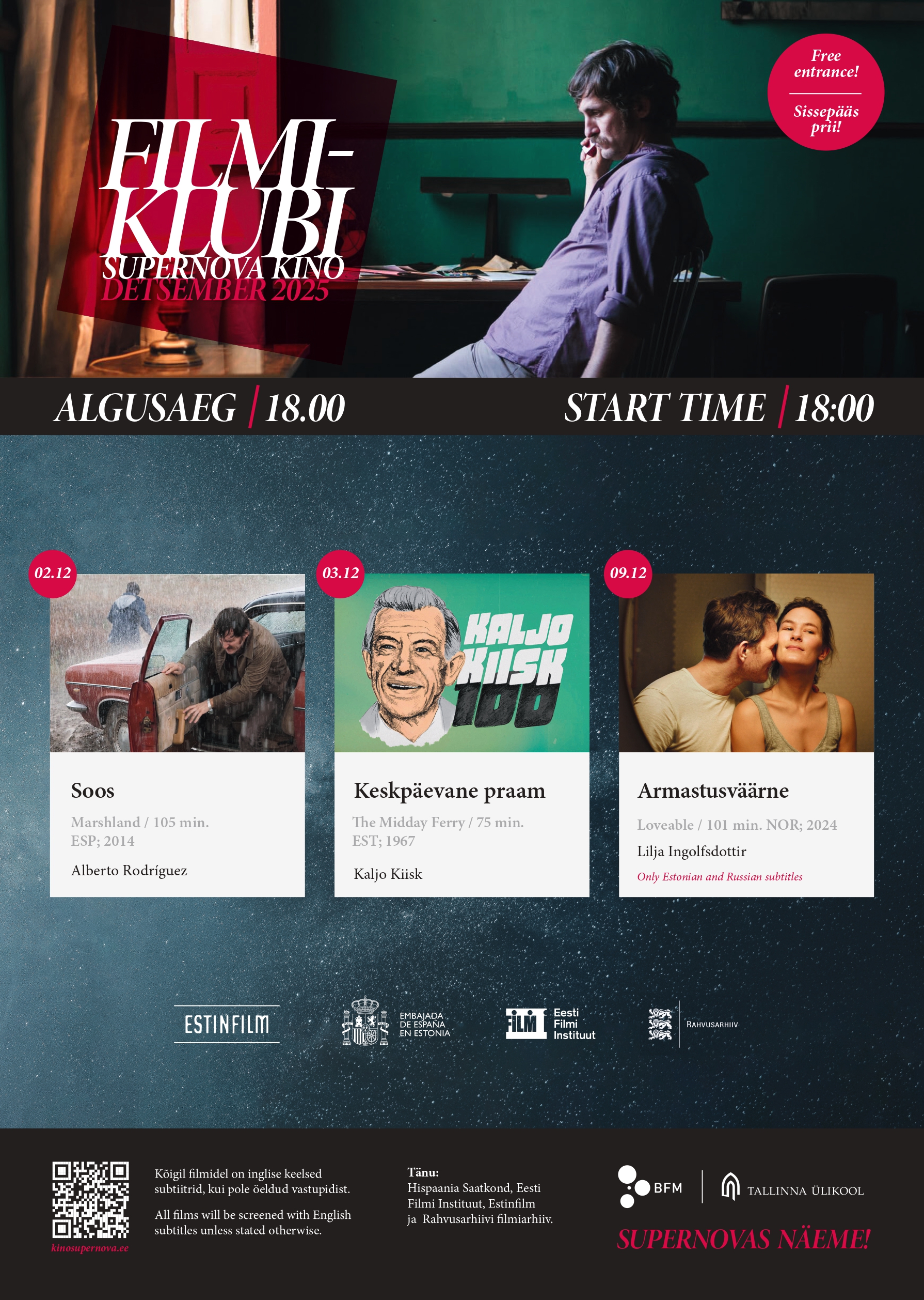 Sissepääs SuperNovasse kõigile prii! Ole Sa tudeng, õppejõud, töötaja või lihtsalt filmihuviline.